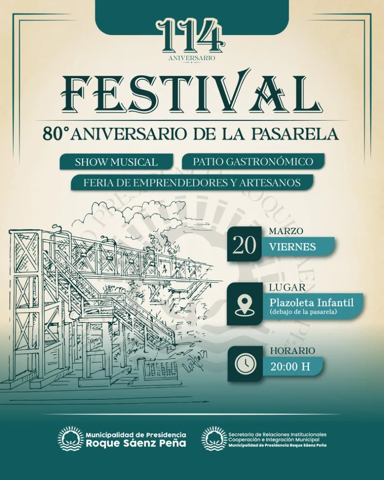 Con una importante participación de vecinos, la Municipalidad de Presidencia Roque Sáenz Peña celebró el 80° aniversario de la Pasarela con un festival realizado en la plazoleta infantil ubicada debajo…