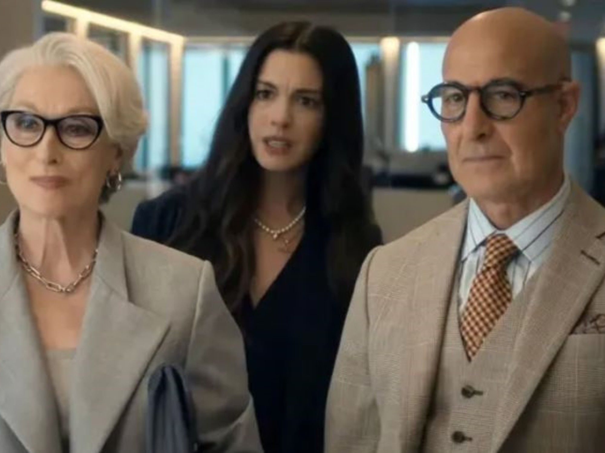 La nueva película toma esa premisa de manera libre. En lugar de seguir ese mismo camino, propone el regreso de Andy a Runway, ahora en un rol más alto dentro de la estructura editorial, mientras Miranda enfrenta el desafío de sostener la revista en un contexto atravesado por la crisis de los medios tradicionales. El conflicto, así, se vuelve más directo y actual, con un cruce renovado entre ambas.