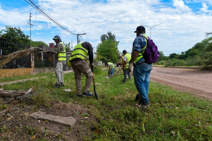 Por otra parte, desde el área también se realizan operativos de limpieza integral en distintos barrios, como es el caso del B° Sarmiento, donde cuadrillas municipales trabajan en la limpieza de cunetas y alcantarillas, además de la recolección de ramas, pasto y escombros acumulados en la vía pública.