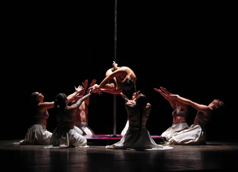 La música en vivo estará a cargo de Jade, banda que fusiona soft, ballad, pop, gospel y folk, con synths, guitarras y ritmos vibrantes. A esto se suman las coreografías de House of SoulPole, academia que entiende el pole dance como una disciplina artística y física, y la intervención textil de Triart3, colectivo especializado en propuestas sensoriales que transforman el espacio escénico.