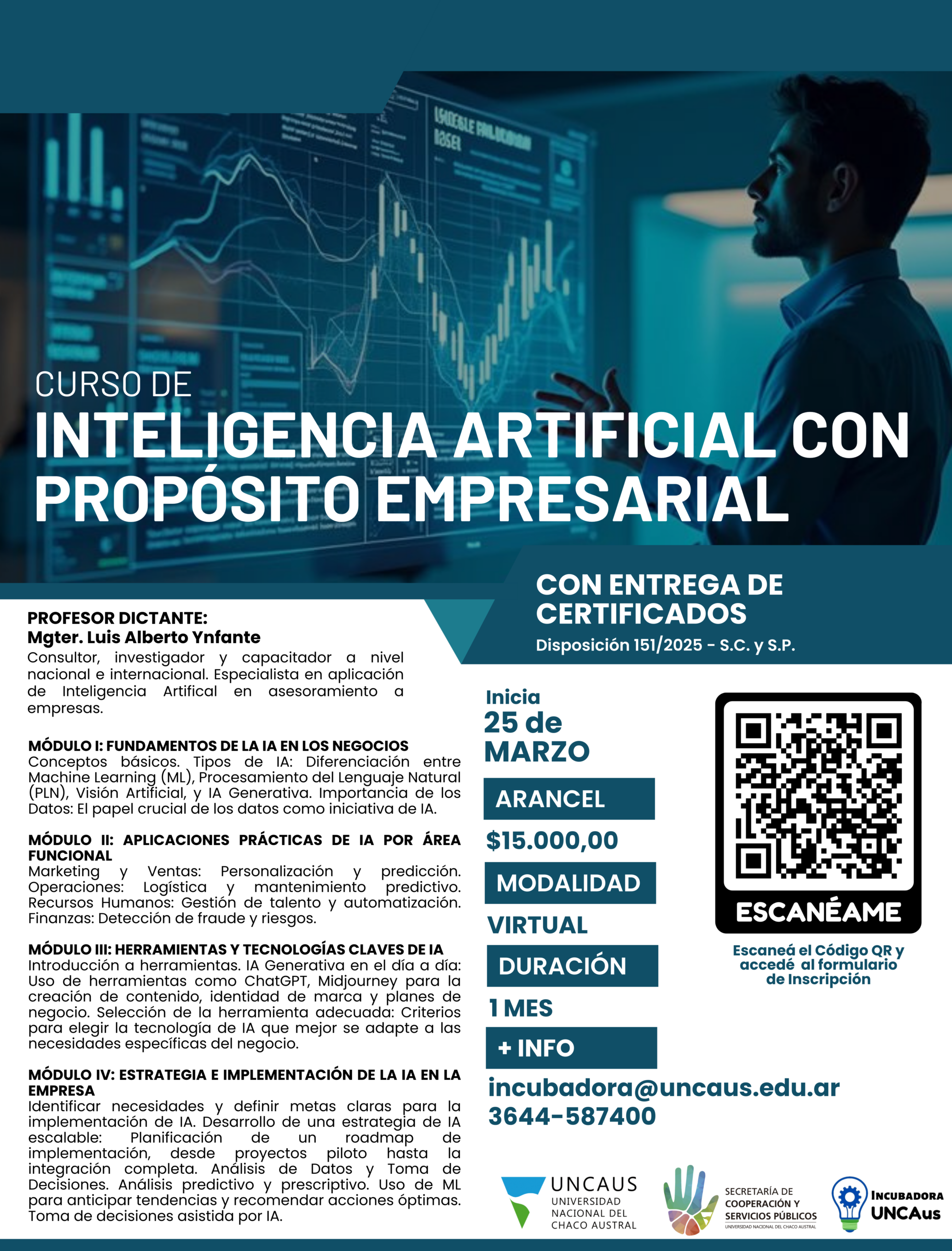 🎓 Beneficio para personas vinculadas a UNCAus: Si sos docente, no docente, alumno o egresado de UNCAUS, obtenés un 20% de descuento → abonás solo $12.000 🧾